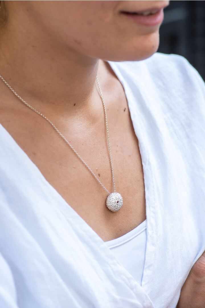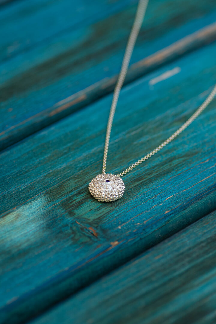 Με μια ειδική τεχνική της χρυσοχοΐας ο αχινός μετατράπηκε σε ασήμι 925. Από τότε στο χυτήριο παράγουμε πολλούς από αυτούς ώστε να έρθουν σε εσάς μαζί με όλη τους την καλοκαιρινή αύρα!